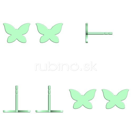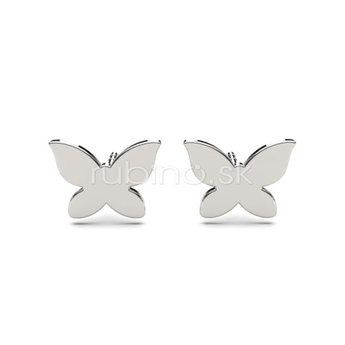 Strieborné dámske náušnice 925 v tvare motýľa, hladké s povrchovou úpravou s vysokým leskom. Zapínanie na silikón.