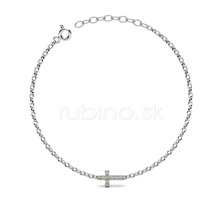 Strieborný dámsky náramok 925 v strede so zirkónovým krížikom.
